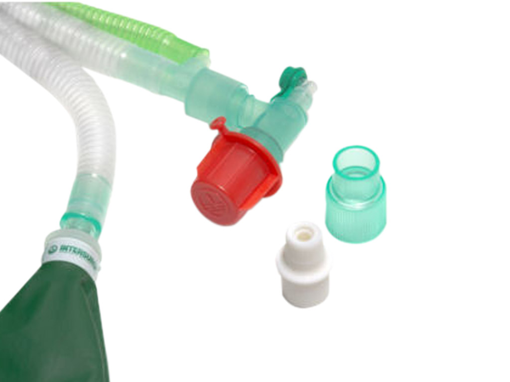 CIRCUITO RESPIRATORIO APERTO MAPLESON F, MODELLO A T PEDIATRICO, con variante JACKSON REES, raccordo a T e pallone aperto da 0.5 L, lunghezza 1,8 m. Versione di circuito a T che permette un monitoraggio dei gas respiratori con l’opzione del gomito removibile di ridurre lo spazio morto.