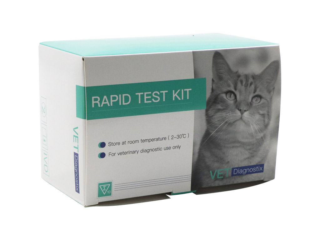 TEST PARVOVIRUS GATTO (FPV Ag). Campione di feci o vomito di gatto. Caratteristiche speciali: Sensibilità relativa: 97,40% – Specificità relativa: 98,11% – Precisione relativa: 97,65%. Confezione da 10 pezzi.